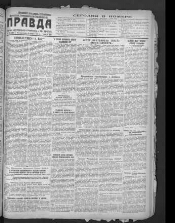Правда : орган Центрального Комитета Коммунистической партии Советского Союза. - 1912, 5 мая (22 апреля) - 1991, 22 августа. -Москва, 1917, 9 ноября (26 октября) - 1991, 22 августа. - Заглавие: 1912, № 1 (5 мая (22 апр.)) - 1913, № 152 (356) (18(5) июля) Правда ; 1913, № 1 (26(13) июля) - 17 (14(1) авг.) Рабочая правда ; 1913, № 1 (14(1) авг.) - 31 (20(7) сент.) Северная правда ; 1913, № 1 (24(11) сент.) - 20 (22(9) окт.) Правда труда ; 1913, № 1 (14(1) окт.) - 52 (18(5) дек.) За правду ; 1913, № 1 (20(7) дек.) - 1914, № 16 (34) (4 февр. (21 янв.)) Пролетарская правда ; 1914, № 1 (5 февр. (22 янв.)) - 92 (6 июня (21 мая)) Путь правды ; 1914, № 1 (5 мая (22 апр.)) - 9 (20(7) июля) Рабочий ; 1914, № 1 (4 июня (23 мая)) - 35 (21(8) июля) Трудовая правда ; 1917, № 1 (5(18) марта) - 99 (18(5) июля) Правда ; 1917, ненум вып. (19(6) июля) Листок "Правды" ; 1917, № 1 (23 июля) - 16 (10 авг.) Рабочий и солдат ; 1917, № 1 (26(13) авг.) - 9 (5 сент. (23 авг.)) Пролетарий ; 1917, № 1 (7 сент. (25 авг.)) - 12 (15(2) сент.) Рабочий ; 1917, № 1 (16(3) сент.) - 46 (8 нояб. (26 окт.)) Рабочий путь ; 1917, № 170 (101) (9 нояб. (27 окт.)) - 174 (105) (13 нояб. (31 окт.)) Правда (Рабочий путь); 1917, (9 нояб. (27 окт.)) - Правда. Подзаг.: 1913 -1914 рабочая газета, орган ЦК и Петербургского комитета РСДРП(б) ; 1917 орган ЦК и Петроградского комитета РСДРП(б), орган ЦК РСДРП(б) ; 1918-1991 орган РКП(б), Центрального комитета и МК ВКП(б), КПСС. Гл. ред.: Молотов В. М., Сталин И. В., Бухарин Н. И., Ольминский М. С., Мехлис Л. З., Суслов М. А., Шепилов Д. Т., Зимянин М. В., Афанасьев В. Г. и др. Место издания: 1912, 5 мая (22 апр.) - 1914, 9 (22) июля Санкт-Петербург ; 1917, 5 (18) марта - 1918, 15 (2) марта Петроград ; 1918, 16 (3) марта - 1991, 22 августа Москва. Перерыв в издании: 1914, 9 (22) июля - 1917, 4 (17) марта. Выходит ежедневно. - Выходит с 5 мая (22 апр.) 1912 г.