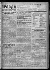 Правда : орган Центрального Комитета Коммунистической партии Советского Союза. - 1912, 5 мая (22 апреля) - 1991, 22 августа. -Москва, 1917, 9 ноября (26 октября) - 1991, 22 августа. - Заглавие: 1912, № 1 (5 мая (22 апр.)) - 1913, № 152 (356) (18(5) июля) Правда ; 1913, № 1 (26(13) июля) - 17 (14(1) авг.) Рабочая правда ; 1913, № 1 (14(1) авг.) - 31 (20(7) сент.) Северная правда ; 1913, № 1 (24(11) сент.) - 20 (22(9) окт.) Правда труда ; 1913, № 1 (14(1) окт.) - 52 (18(5) дек.) За правду ; 1913, № 1 (20(7) дек.) - 1914, № 16 (34) (4 февр. (21 янв.)) Пролетарская правда ; 1914, № 1 (5 февр. (22 янв.)) - 92 (6 июня (21 мая)) Путь правды ; 1914, № 1 (5 мая (22 апр.)) - 9 (20(7) июля) Рабочий ; 1914, № 1 (4 июня (23 мая)) - 35 (21(8) июля) Трудовая правда ; 1917, № 1 (5(18) марта) - 99 (18(5) июля) Правда ; 1917, ненум вып. (19(6) июля) Листок "Правды" ; 1917, № 1 (23 июля) - 16 (10 авг.) Рабочий и солдат ; 1917, № 1 (26(13) авг.) - 9 (5 сент. (23 авг.)) Пролетарий ; 1917, № 1 (7 сент. (25 авг.)) - 12 (15(2) сент.) Рабочий ; 1917, № 1 (16(3) сент.) - 46 (8 нояб. (26 окт.)) Рабочий путь ; 1917, № 170 (101) (9 нояб. (27 окт.)) - 174 (105) (13 нояб. (31 окт.)) Правда (Рабочий путь); 1917, (9 нояб. (27 окт.)) - Правда. Подзаг.: 1913 -1914 рабочая газета, орган ЦК и Петербургского комитета РСДРП(б) ; 1917 орган ЦК и Петроградского комитета РСДРП(б), орган ЦК РСДРП(б) ; 1918-1991 орган РКП(б), Центрального комитета и МК ВКП(б), КПСС. Гл. ред.: Молотов В. М., Сталин И. В., Бухарин Н. И., Ольминский М. С., Мехлис Л. З., Суслов М. А., Шепилов Д. Т., Зимянин М. В., Афанасьев В. Г. и др. Место издания: 1912, 5 мая (22 апр.) - 1914, 9 (22) июля Санкт-Петербург ; 1917, 5 (18) марта - 1918, 15 (2) марта Петроград ; 1918, 16 (3) марта - 1991, 22 августа Москва. Перерыв в издании: 1914, 9 (22) июля - 1917, 4 (17) марта. Выходит ежедневно. - Выходит с 5 мая (22 апр.) 1912 г.
