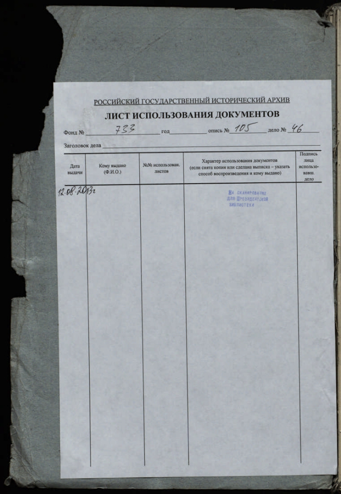 | Шифр хранения | РГИА. 733 / 105 / 46 |