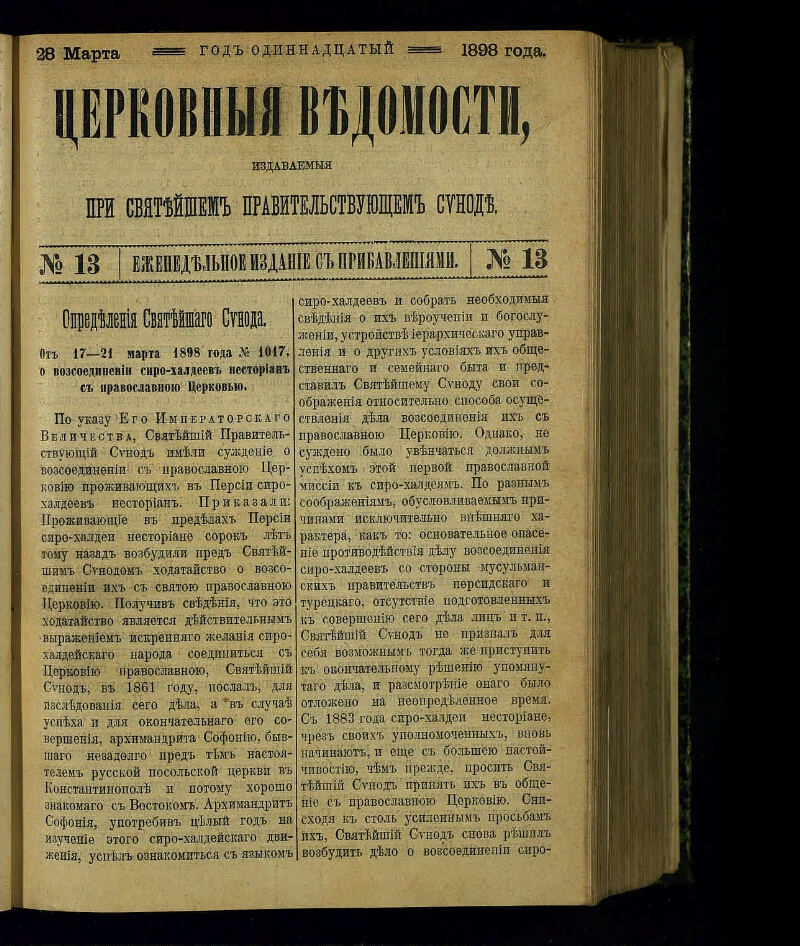 Г. 11 1898, № 13 (28 марта). - [Синод. тип.], 1898. - [48] с. разд. паг. - Библиогр. в подстроч. примеч.