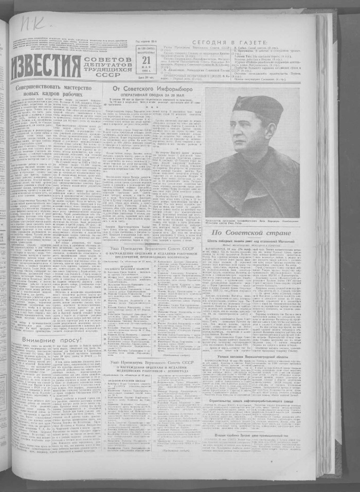 Известия Советов депутатов трудящихся СССР. 1944, № 120 (8422) (21 мая)