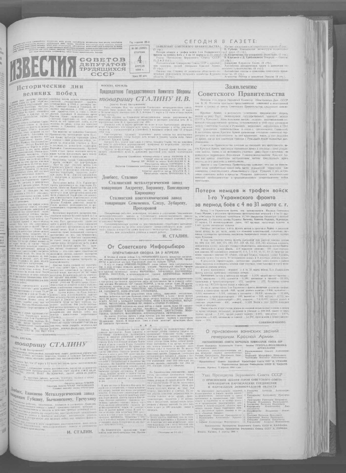 Известия Советов депутатов трудящихся СССР. 1944, № 80 (8382) (4 апреля)