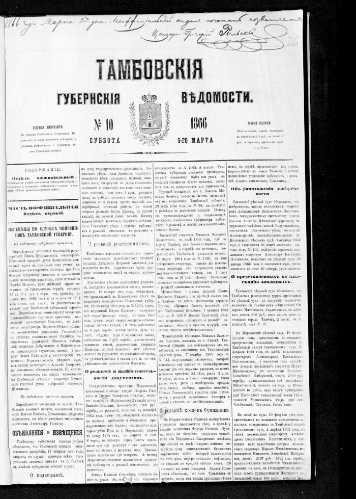 Тамбовские губернские ведомости. 1866, № 10 (5 марта)