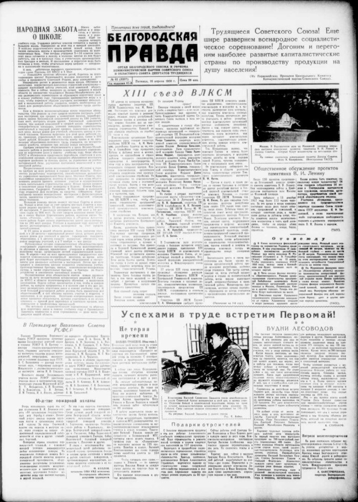 Белгородская правда. 1958, № 92 (8507) (18 апр.)