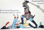 The exposition includes about 40 engravings from the collection o the professor Vladimir Belikov (Moscow), which were exposed at 265 exhibitions. It is open with satirical leaflets of 1812 and stylized of folk splint sheets, made by professional artists A. Venetsianov and I. Terebenev.