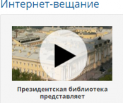 На портале Президентской библиотеки с понедельника по пятницу в разделе «Интернет-вещание» в режиме онлайн транслируются фильмы и видеолекции, подготовленные Президентской библиотекой, а также ведущими киностудиями страны.
