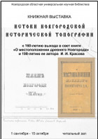 The exhibition puts on show publications on topography of ancient Novgorod by prominent historians and archeologists V. L. Yanin, B. D. Grekov, S. N. Orlov, V. A. Burov, M. I. Zhikh and publications on the life and career of the pedagogue and local historian I. I. Krasov.
