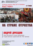 The exhibition is organized within the project "Master and students" of the Museum and Exhibition Hall of the People's Artist of Russia M. G. Abakumov and presents the work of a member of the Moscow Union of Artists, the M. B. Grekov Studio of military artists, graduate of MGAHI Surikov Andrey Drozdov.
