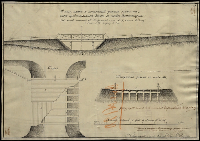 | Title | Technical and Construction Committee of the Ministry of Internal Affairs. Foundation Technical and Construction Committee of the Ministry of Internal Affairs. Plan Kalinkinsky Bridge to the project of the electric road St. Petersburg-Oreniebaum |