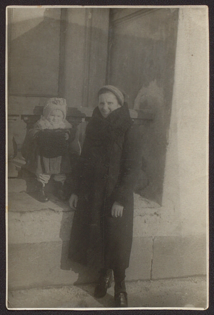 Brynova Nikodimovna Vera and his daughter Anna: [Photo].- [1943].- printing, black-and-white.-Access: Internet portal of the Presidential Library.Electronic reproduction (2 files, JPEG: 2,6 MB).Family photograph, full length, pryamolichno.Picture pasted on cardboard.users copying is not allowed.Brynova Nikodimovna Vera - the wife of Sergei Ivanovich Brynova;Brynova Anna S. (married Timofeev) - the daughter of Sergei Ivanovich Brynova.- Bryn Sergey Ivanovich (1910-1989) - a veteran of two of the Baltic Fleet, the specialist diving business.In 1930-1931 he studied at the diving school EPRON (EPRON) in Balaklava (May 16, 1931 diving school was reorganized into paramilitary sea diving college EPRON - the only one in the country).In 1937 he graduated from the same course in metal cutting under water.In October 1937, began working as a diver on the famous icebreaker "Krasin", in August 1938, he participated in the rescue of the icebreaker "Lenin" in the New Earth.Then he worked a diving instructor in the river port of the North-West River Shipping Company, head of the diving station Osinovezckiy port.During World War II participated in the rise of the flooded transport operations, carried out combat missions of command in the defense of Leningrad.For all military navigation with his participation was raised by more than 70 swimming and vehicles, including tanks from the bottom of the Neva and cars with food, equipment and materials from the bottom of Lake Ladoga, on the Road of Life.He was awarded the medal "For the Defense of Leningrad".After World War II, with his subordinates, to perform complex diving operations to restore the North-Western basin and clearing of waterways.1. Brynova, Anna S. (1941) - Photographs.2. Brynova Vera Nikodimovna (1913-2006) - Photographs.3. The people (set).4. Russia in the people of (the collection).5. The memory of the Great Victory (collection).6. Residents of besieged Leningrad - Photos.7. Documentary photography.8. portrait photography.BBK 63.3 (2) 622,11-8ya611electronic copy Source: PBThe storage location of the original: From the private collection