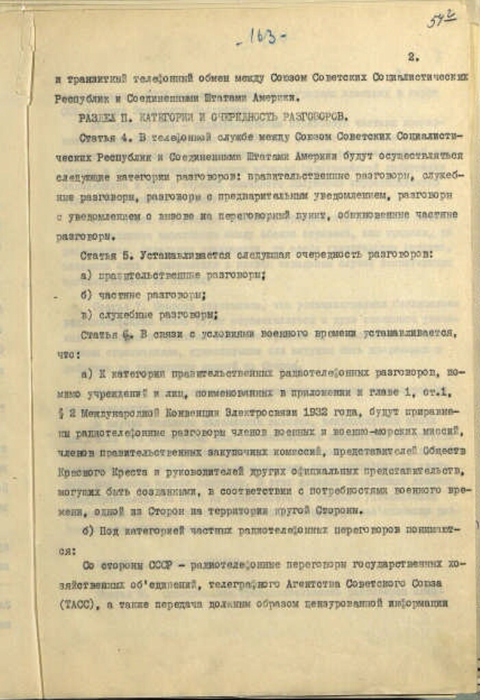 | Title | Decree of the Council of People's Commissars of the USSR No. 1466-719ss "On the establishment of a direct radiotelephone communication between the USSR and the USA", with an application of an agreement on the establishment of a direct radiotelephone communication between the USSR and the USA |