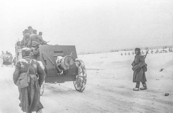 | Title | The artillery division of the 122-mm howitzers is sent to new positions |