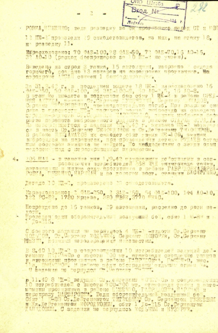 Title Operational summary No. 0398 of the 8th Air Army of the Stalingrad Front by 23.00