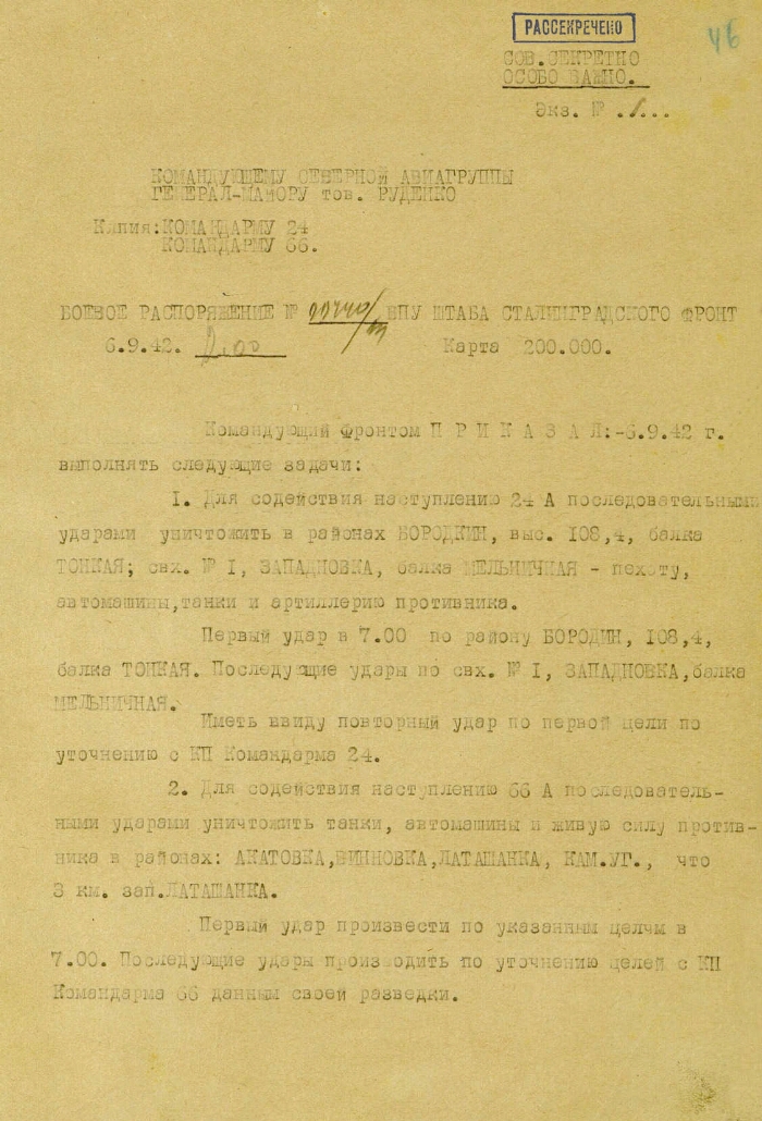 | Title | Combat order No. 00440/OP POPA of the headquarters of the Stalingrad Front on the destruction of infantry, tanks and vehicles of the enemy in the areas of Borodka, Tonskaya Balka, Zabankovka, Melnichnaya Balka |