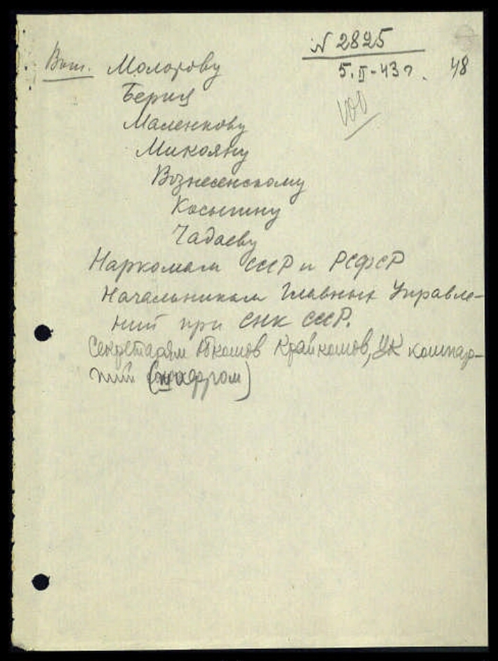 | Call number | РГАСПИ. Ф. 644. Оп. 1. Д. 86. Л. 37-38; Оп. 2. Д. 131. Л. 47-50 |