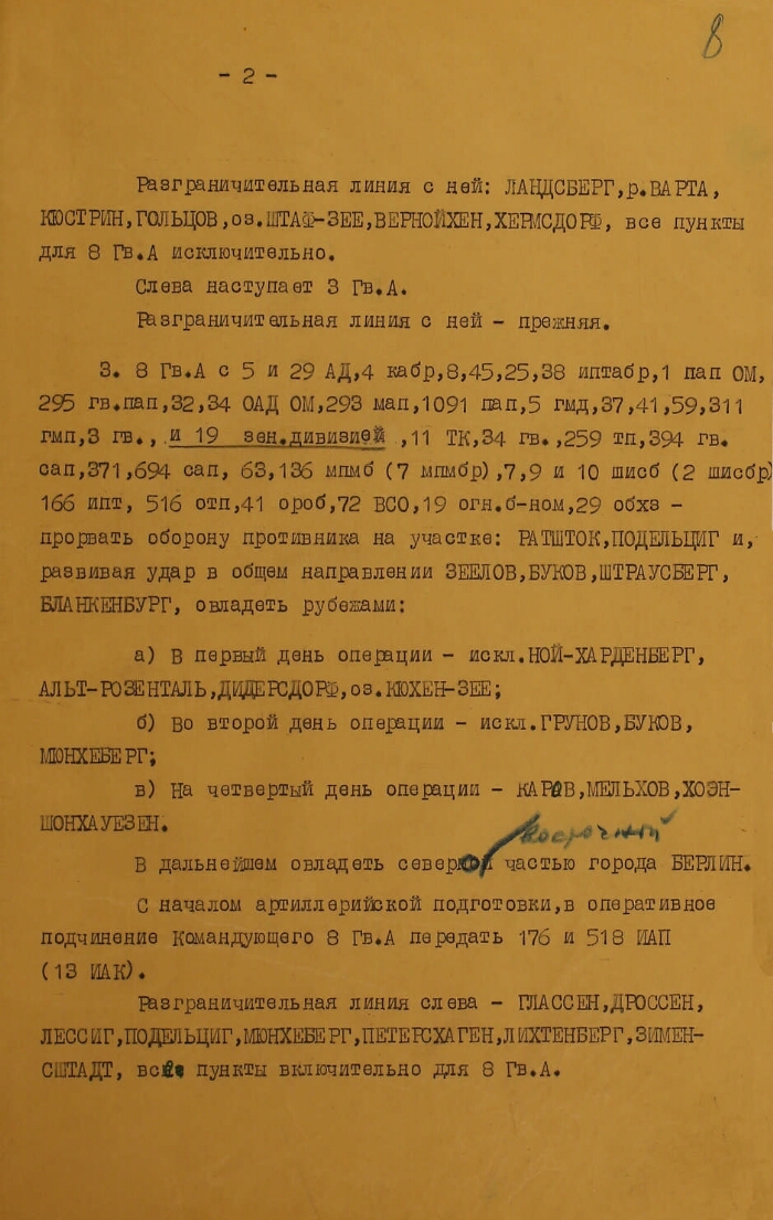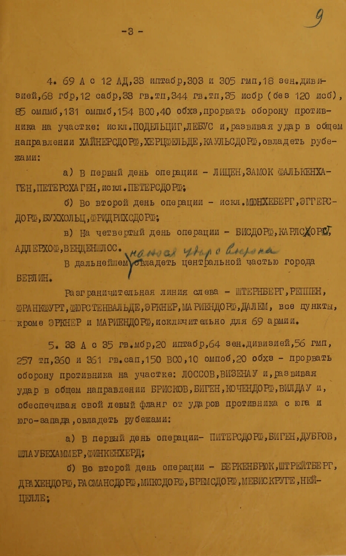 | Title | Operational Directive No. 00310/OP of the headquarters of the 1st Belorussian Front on preparation for an offensive operation in the direction of Berlin.Script.February 13, 1945 |