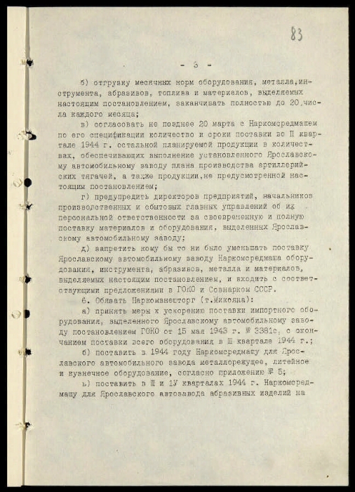 | Title | Resolution of the USSR GKO No. 5304 C to increase the release of artillery tractors with the Yaroslavl automobile plant of the People's Commissariat of Medium Engineering, with the application of the statements of metals, materials and equipment.March 5, 1944 |