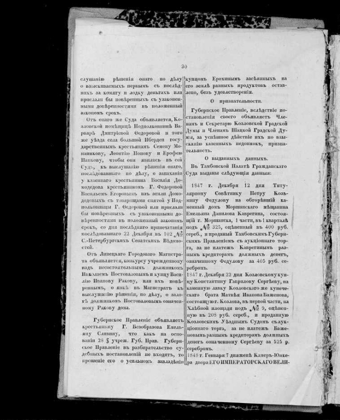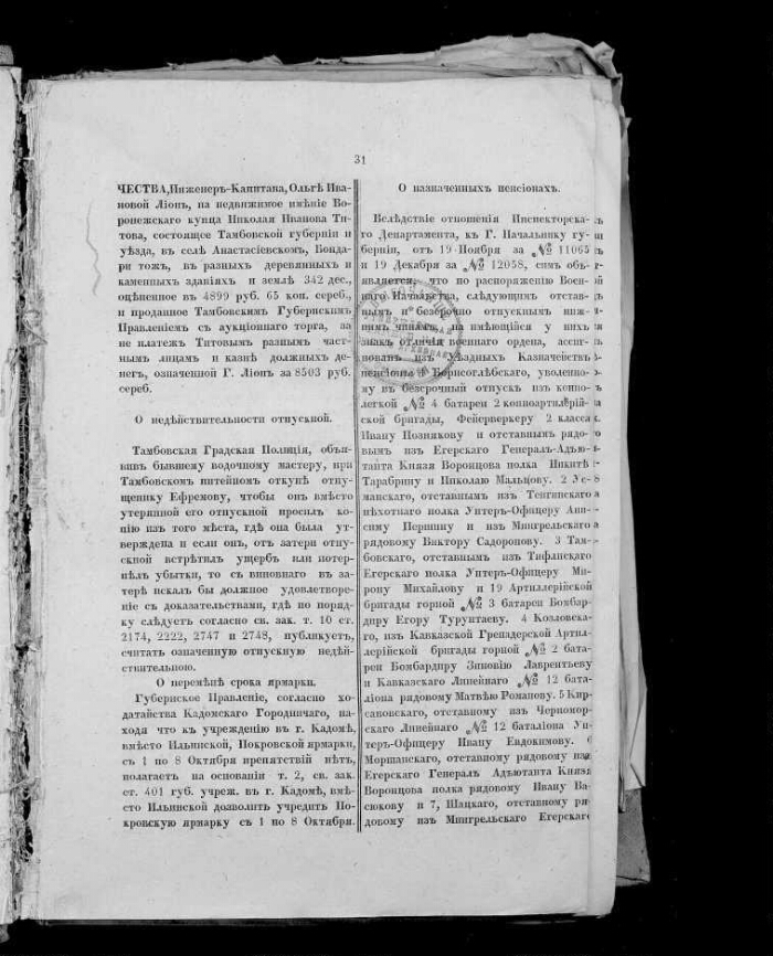 Tambov Province Gazette. - 1838, January 8 - [?]. -Tambov, 1838-1917. - The newspaper was published at the Tambov Provincial Board from 1838. Initially, it was published weekly, from the half of 1876, twice a week, and from the year 1877 it was published three times a week. From 1838 to March 1, 1907 came out in two parts: official and unofficial; from 1838 to March 1845, the unofficial part was published as an addendum to the number. Bibliography: Index of articles placed in the informal department of the "Tambov Provincial Gazette" for 1870 - 1877. / MP Grigorovsky; Index of articles placed in the informal department of the "Tambov Provincial Gazette" for 1838 - 1840. / Solovsky VV; Index of articles placed in the informal department of the "Tambov Provincial Gazette" for 1841 - 1842