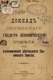 Skopinsky county.Zemsky Economic Council.Report of the Skopinsky county Economic Council on the agronomic activities of Skopinskaya Zemstvo ... - Skopin, 1905-1908.- 24. -Stall.Vol.For 1908, Dzhagn.Changed..Electronic Source: PB[in 1904].- typoite.Hall.Good, 1905. -78 s .. -.Electronic Source: PB