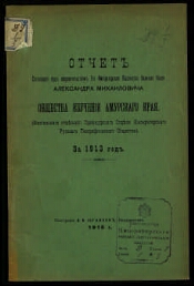 Society for the study of the Amur Territory (Vladivostok).Report of the Company's Society for the study of the Amur region (Vladivostok departure of Priamur. Dep. Imp. Rus. Geogr. O-VA) ... - Vladivostok, [189-].- 25 cm. -Stall.Reports: For 1888-91: Reports of the Society for the Study of the Amur Region;For 1892-93: Report of the Company of the Amur Region Studies;For 1894-97, 1899-1905, 1909-1914: Report of the Company's Society for the Study of the Amur Territory (branch offices of imp. Rus. Geogr. O-VA).Place ed.The report for 1888/1891 is not specified..1. People (collection).2. Territory (collection).3. The point of attraction is the Russian Far East.To the Eastern Economic Forum (Collection).4. Amur Region - History - Documents and Materials.BBK 63.3 (285.5) 531Electronic Source: PBOriginal Storage Place: Russian Geographical SocietyFor 1913 / branch deposit of the Amur Department.Imp.Rus.geogr.o -a.- A type.VC.Johanson, 1915. -43 p.: Tab .. -.Electronic Source: PB