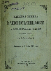 Address book Gg. Members of the State Council for the Highest Designation and for elections in St. Petersburg. - 1911. -25L .. - (The main Russian fund of the NBB, the main Russian fund.). - St. Petersburg. State Printing House. 1911. The book.
