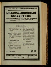 3. 3. 1925. No. 35. September 22. - 1925. -38, [2] p. : tab. - Contents: On the issue of the School of Peasant Youth: (Population, youth, teacher, school) / N.A. Kuznetsov. The state budget of secondary and lower vocational schools in Leningrad and the province for 1924-25 school. (Continuation) / F. Borisov. Regulations on the supply of fuel to Gubono institutions for the 1925-1926 academic year. Regulations on schools of teenagers of Leningrad Gubesotsvoz. On sending candidates to Sotsvob to occupy posts of music teachers, [and others]. - Bibliograf. in the text. . -3500 copies.