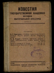 News of the State Academy of the History of Material Culture named after N.Ya. Marra. - Moscow; Leningrad: Sotsakgiz, 1921-1936. - Location: T. 1 (1921) - 2 (1922) Fri .; T. 3 (1924) - T. 14 (1932), Vol. 60 (1932), 71 (1934), 73-75, 78 (1933) L .; Issue. 68 [2nd and 3rd plant] (1933-1934), 72, 76-73 (1934), 79 (1934) - 141 (1935), 154 (1935) M.-L. in: T. 5 (1927) - T. 6 Issue. 8/9 (1931) Acad. the history of material culture (in T. 6 Issue 1 State Academic ..., in T. 6 Issue 2 - 8/9 GAIMK); Vol. 14, no. 3 (1932) ECGIZ-GAIMK; Vol. 14, no. 4 (1932), Issue. 60 (1932), 62 - 66 (1933) Sosedzgiz-GAIMK; Issue. 61, 67, 68 [1st Plant] (1933), 69-71, 73-75, 78 (1933) Publishing House of GAIMK (in Issue 68 OGIZ GAIMK); Issue. 68 [the 2nd and the third factory] (1933-1934), 72, 76-77, 80-84 (1934), 85 (1933) - 87 (1934), 89 (1934) - 121 (1935), 123 (1934) - 133 (1935), 134 - 154 (1935) Sotsgiz (in Issue 129, 131). In the overdrive: T. 8 Issue. 1 - 2/3 (1931), Vol. 9, Vol. 1-4 (1931), Issue. 68 [1st - 3rd plant] (1933-1934), 80, 83, 87, 89, 101, 103-107 (1934), 109, 111-121, 125-141, 154 (1935) State. acad. the history of material culture (in Issue 104, 109, 111, 114-121, 124-141, 154 ... named after N.Ya. Marr); Fasc. 88 (1934), 122 (1935) Academie de l'histoire de la culture materielle; Fasc. 93 (1934) State academy for history of material culture. After the release of Vyp. 4 T. 14, 1932, the numbering begins with Vol. 60, taking into account all previously published issues. Закл.: Т. 1 (1921) - 4 (1925) Izvestiya of the Russian Academy of Material Culture; T. 5 (1927) - 7 (1931) Proceedings of the State Academy of the History of Material Culture; T. 8 Vyp. 1 - 2/3, T. 9 Issue. 1-4 (1931) Izvestia; T. 8 Vyp. 4/7 - 8/10 (1931), Vol. 9, Vol. 5 (1931) - Vol. 14 (1932), Issue. 60 (1932) - 87 (1934), 89-92 (1934), 94 (1934) - 121 (1935), 123 (1934) - 154 (1935) Proceedings of the State Academy of the History of Material Culture (in Issue 102, 111, 114-121, 125-141, 154 ... named after N.Ya. Marr); Fasc. 88 (1934), 122.