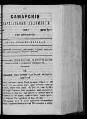 Samara Diocesan Vedomosti: 1- [53].- Samara, 1867-1924, 1990-.-In 1919-1923ed.did not go out.Resumed from 1989.Publishing house: 1924 Samar.Epars.UPR.Zl.: 1894-1914 No. 8-9 Samara Diocesan Vedomosti, published in the diocesan fraternity of St.Alexia;Since 1990, Samara Diocesan Vedomosti, published in the Kuibyshev Diocese;Since 1992, Samara Diocesan Vedomosti, published in the Samara Diocese.Place ed.: 1867-1924, 1992 Samara;1990 Kuibyshev..1. People (collection).Electronic Source: PBOriginal storage place: Samara ohG. 12. 1878. No. 6. March 15.Ch. Neophitz.- [lips.Type.], 1878. - [24] with .. - -Content: Comparison of the teachings of Molokan with the teachings of the Church of the Apostolic about the sacrament of the priesthood.Obituary.Ads.- Bibliogr.in the text..1. People (collection).Electronic Source: PBOriginal storage place: Samara oh