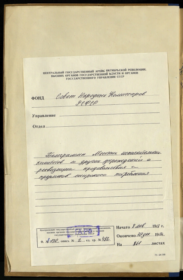 | Fonds | Council of People's Commissars of the RSFSR (Council of People's Commissars of the RSFSR) |