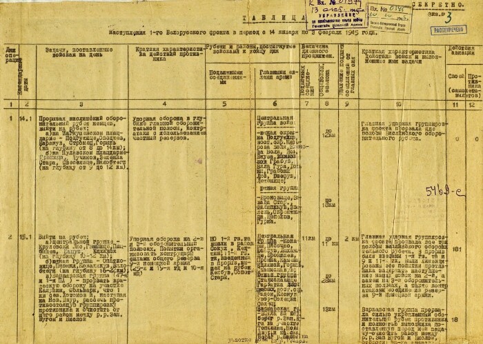 The offensive table of the 1st Belorussian Front in the period from January 14 to February 3, 1945
