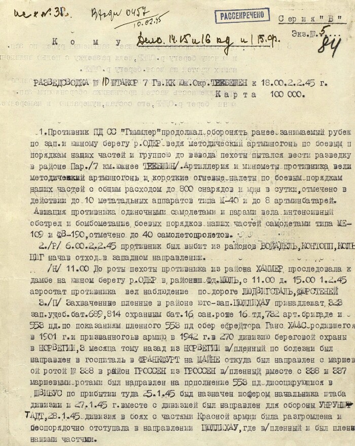 Intelligence report No. 10 of the headquarters of the 7th Guards Cavalry Corps of the 1st Belorussian Front by 18.00