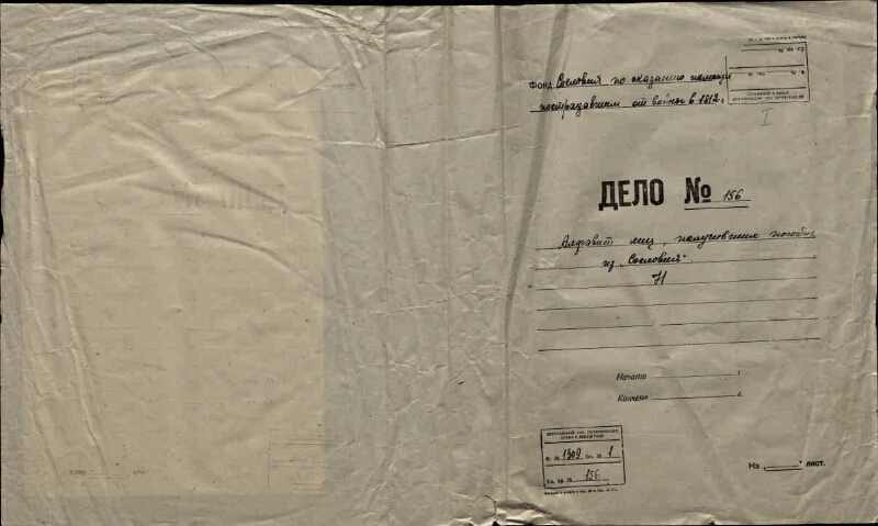 Alphabet of persons who received benefits from the "Estate" [Business]. N. - [1812]. - 69 liters. ; 36.5x26 cm. - (Fund of the Estate of the Trustees of Charity of the charity ruined from the enemy in 1812 Inventory No. 1). - Handwritten text. On the folder the name of the foundation: Foundation of the Estate for rendering assistance to the victims of the war in 1812. The case is a list of persons who received benefits from the Society for Assistance to Victims of the Patriotic War of 1812 , under the patronage of VP Kochubei, NN Golovin, NA Tolstoy, AS Shishkov and AN Golitsyn, whose activities consisted in accepting donations, examining petitions and issuing benefits on them, indicating persons and amount of money