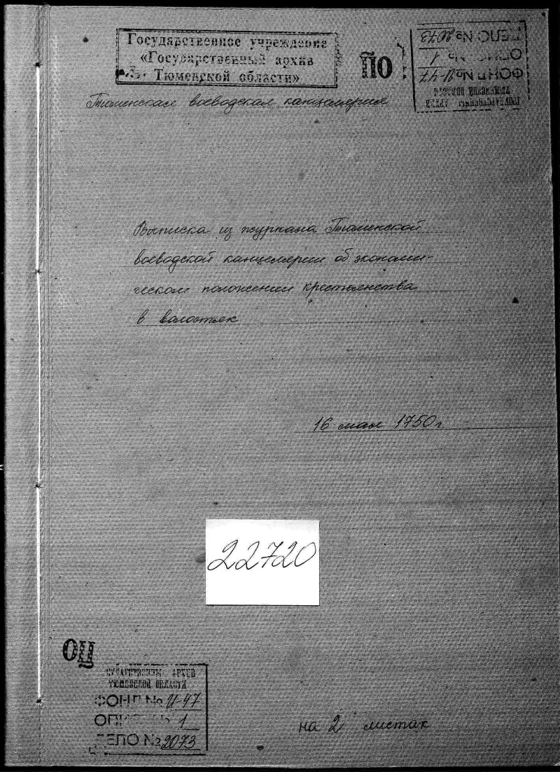 | Call number | Гос. архив Тюменской области.. Д. 2073. |