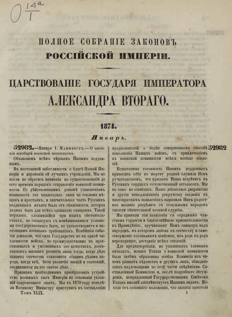 Complete collection of laws of the Russian Empire: Assembly 2-e. - St.Petersburg: In the printing house of the Second Branch of His Own Imperial Majesty's Chancery, 1830-1885. - 31 cm. - The typography of Volume 55 and the General Alphabetical Index: State Printing House. Meeting 2: from December 12, 1825 to February 28, 1881