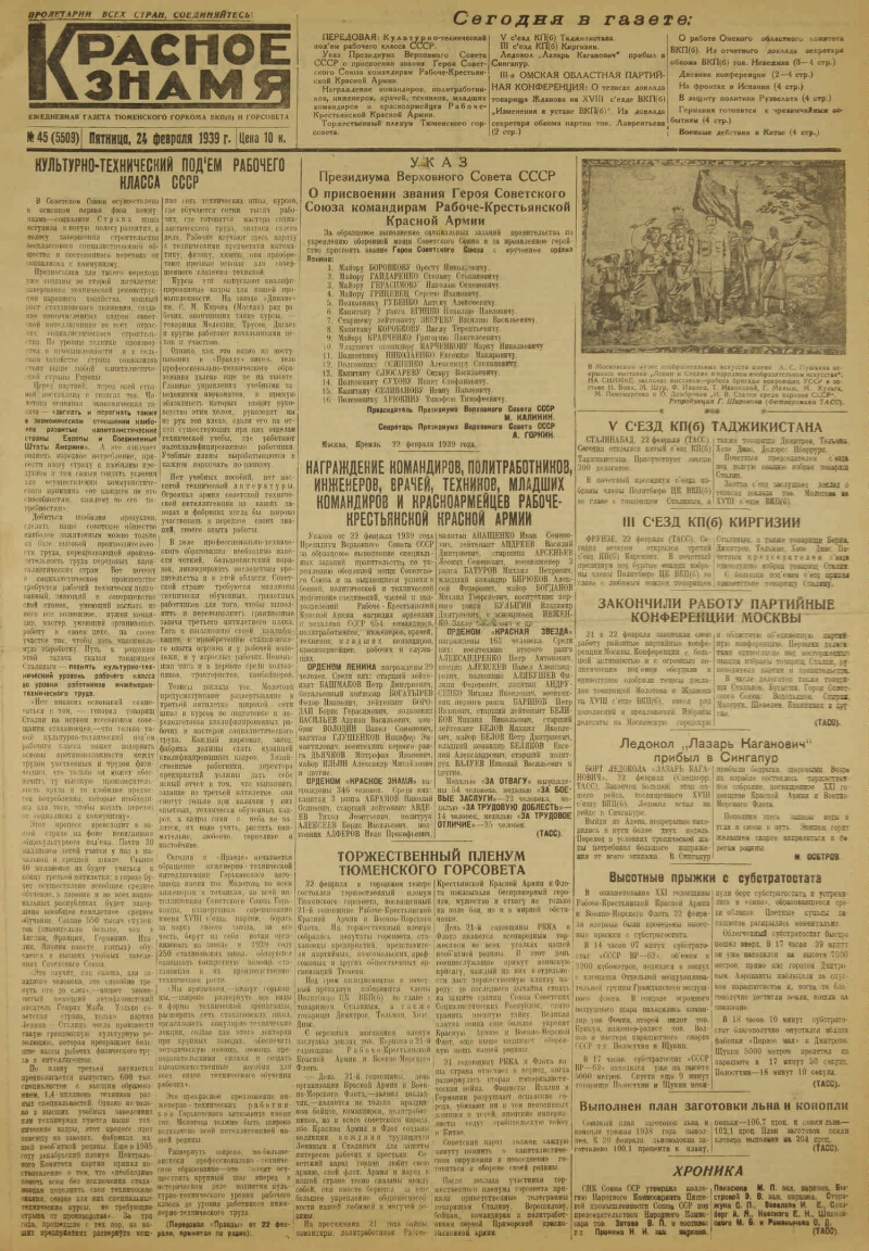 1939, No. 45 (5509) (Feb. 24). - 4 s.