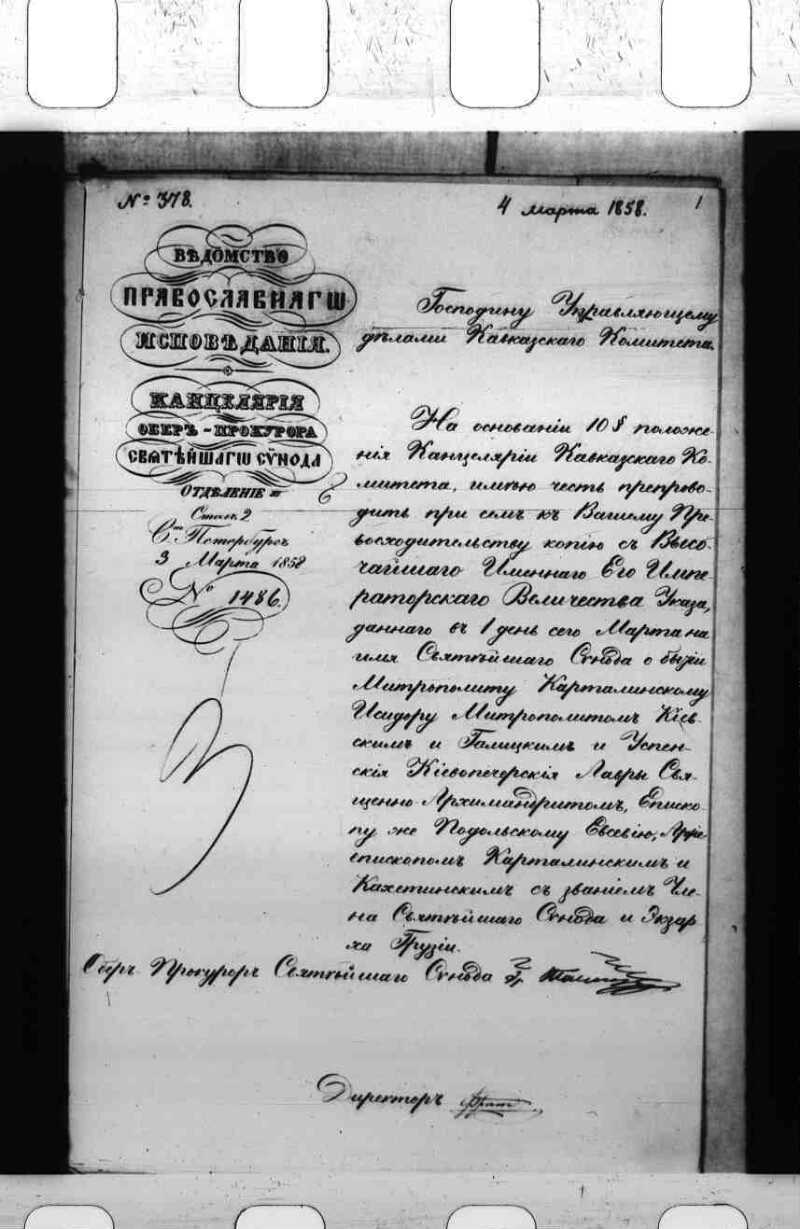 On the life of Metropolitan Kartalinsky Isidor Metropolitan Tchaikovsky and Galician and Assumption Kyiv Pechersk Lavra, the Archimandrite Bishop of Podolsky Evseev, Archbishop Kartalinsky and Kakhetinsky, with the title of a member of the Holy Synod and Exarch of Georgia |