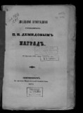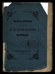 ...Присуждение учрежденных П.Н. Демидовым наград... - Санкт-Петербург : При Императорской Академии наук, 1832-1866. - За 1856 и 1858 гг. читан.: акад. К.С. Веселовским. Загл. вып.: за 1832-1835 гг.: Отчет Имп. Санктпетербургской академии наук о... присуждении премий, учрежденных двора е. и. в. камергером Павлом Николаевичем Демидовым; за ряд лет: Общий отчет об... присуждении демидовских наград...