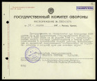 F. 644.Resolution of the USSR GKO No. 1621 on the appointment of Popel N.K. Member of the Military Council of the 28th Army, Mikhalchuk I.I.-member of the Military Council of the 21st Army;On the liberation of Abramov N.V. from the post of member of the Military Council of the 28th Army, with the application of certificates-lens.