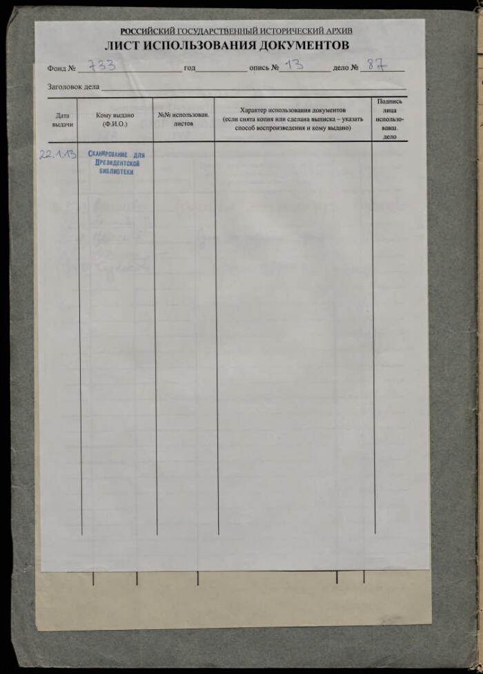 | Организация-создатель записи | РГИА |
