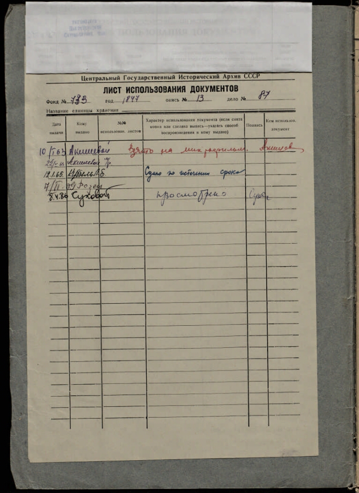 | Шифр хранения | РГИА. 733 / 13 / 87 |