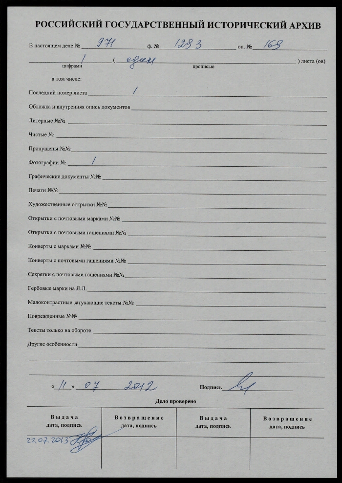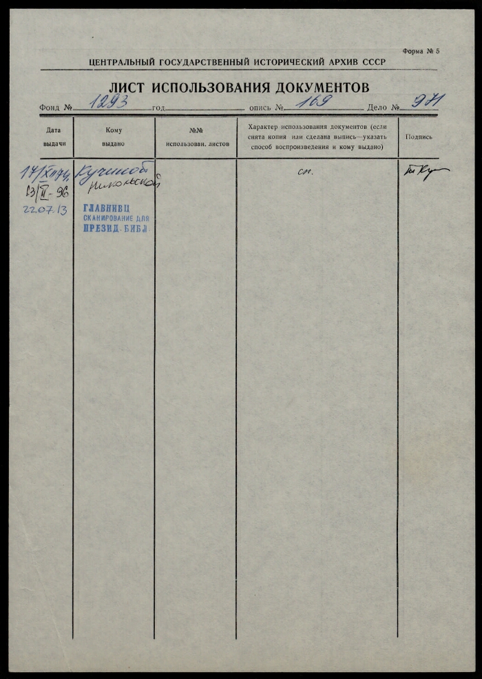 | Шифр хранения | РГИА. 1293 / 169 / 971 |