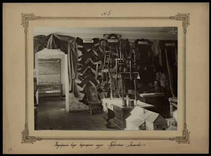 | Примечания | Фотография в конверте, черно-белая, наклеена на картон, в рамке с художественным оформлением. На лицевой стороне написано от руки: № 5. Внутренний вид Кустарного музея Губернского земства Оригинальный заголовок дела: Нижегородская губерния. Город Нижний Новгород. Здание Кустарного музея губернского земства (внутренний вид) : б/д |