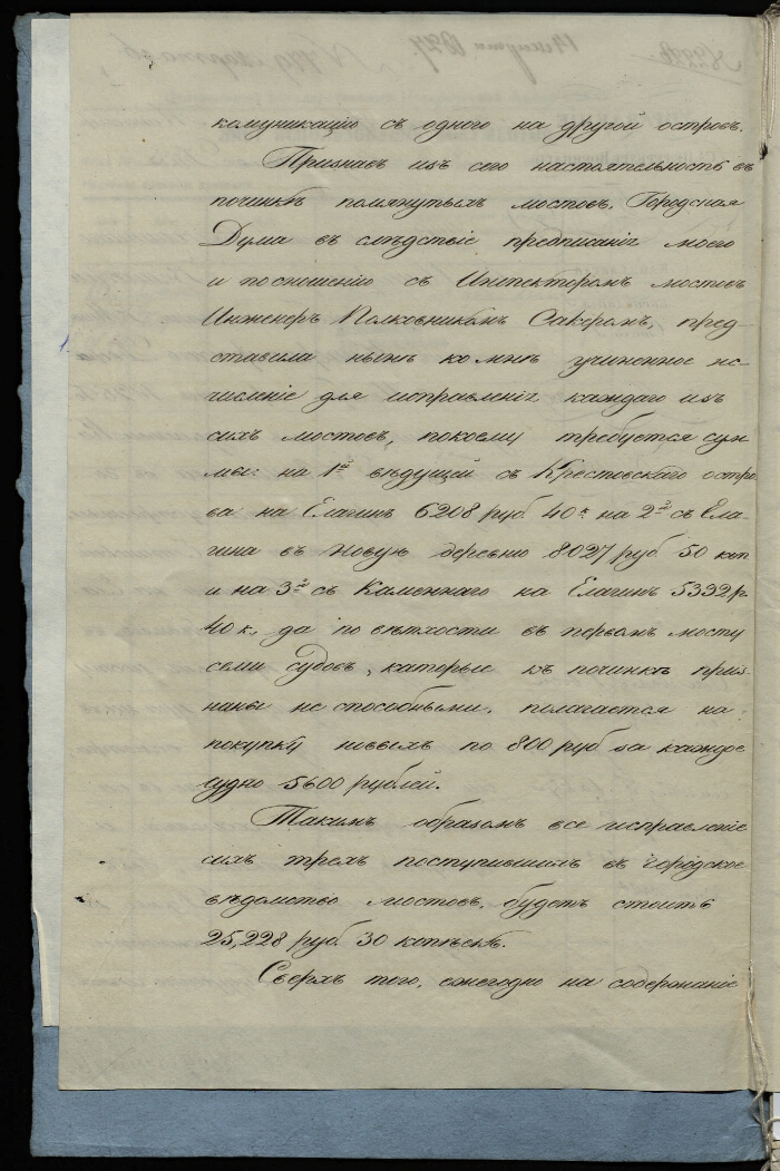 Дело по отношению Санкт-Петербургского военного генерал-губернатора о сумме, потребной на исправление трех мостов: Елагинского, ...