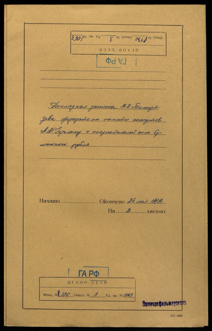 | Шифр хранения | ГА РФ. 130 / 3 / 1063 |