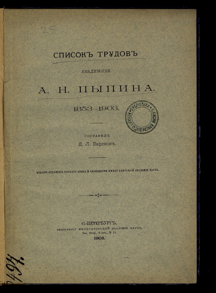 I. Барсков, Яков Лазаревич (1863-1937).1. Пыпин, Александр Николаевич (1833 - 1904) -- Библиография. 2. Народ (коллекция). 3. Россия в лицах (коллекция). 4. Русский язык (коллекция). |