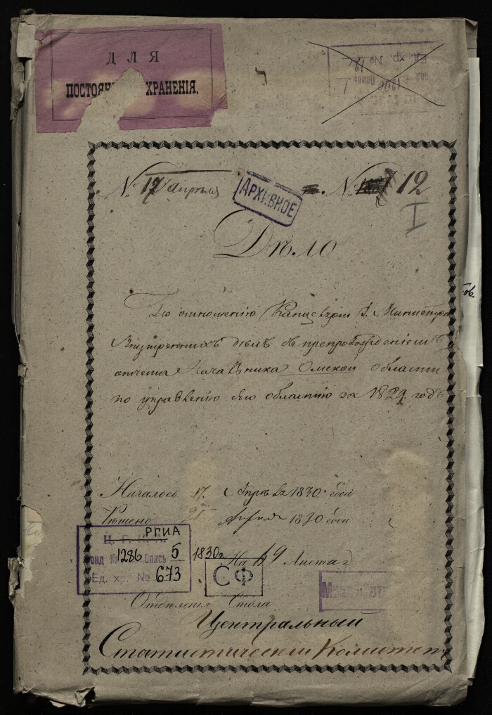 | Примечания | Заголовок дела также: Отчет начальника Омской области по управлению его областью за 1829 год Оригинальный заголвок дела: По отношению Канцелярии ... Министра Внутренних дел о препровождении отчета начальника Омской области по управлению его областью за 1829 год Рукописный текст. Чернила |