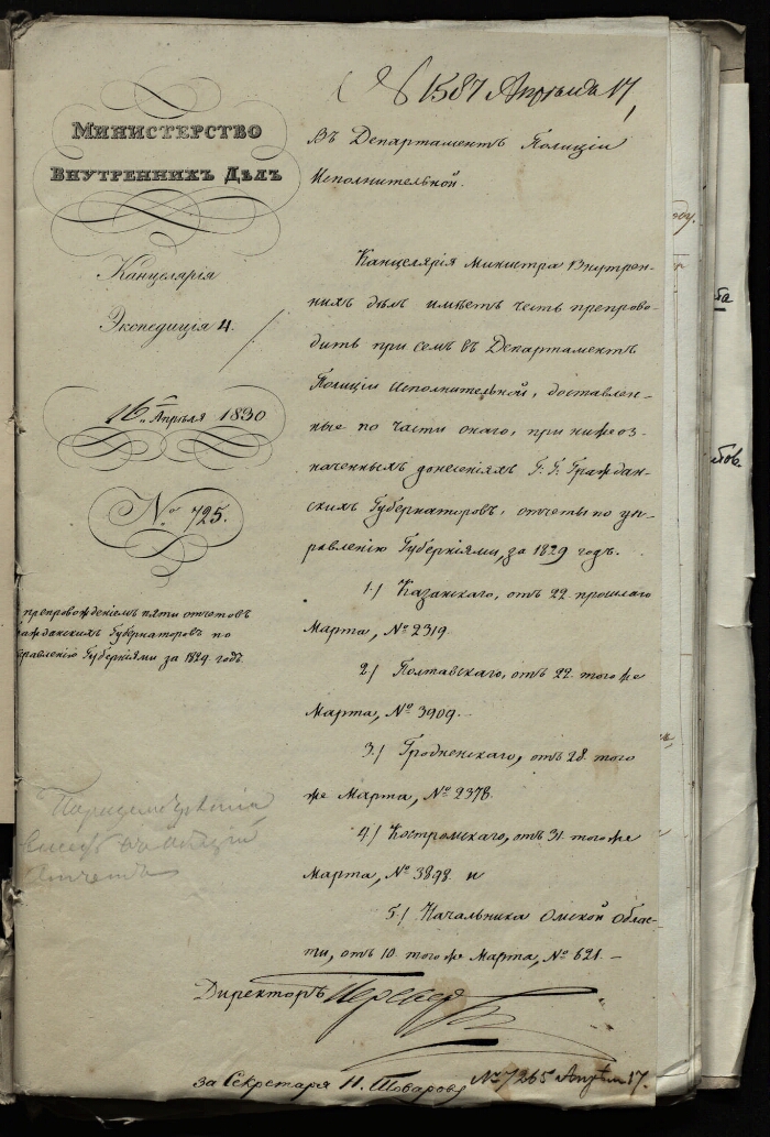 | Описи | 1830-1834 гг. Дела Департамента полиции исполнительной МВД за 1830 г. |