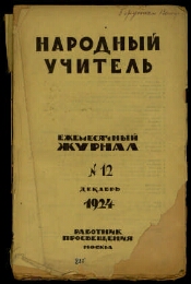 Народный учитель : ежемесячный журнал / под редакцией А. Я. Вигалок, Н. Н. Иорданского, Ф. В. Кипарисова [и др.]. - Москва ; Ленинград, 1924-1935. - Редакторы: 1924-1925, №7/8 А. Я. Вигалок, Н. Н. Иорданский, Ф. В. Кипарисов [и др.] ; 1928-1929, №6 ответственный редактор Ф. В. Кипарисов. Подзаголовки: 1924-1925 №7/8 Ежемесячный журнал ; 1925 №9-1934 Ежемесячный журнал Центрального комитета Союза работников просвещения СССР ; 1935 Общественно-политический, литературно-художественный и научно-педагогический журнал. Орган ЦК профсоюзов работников начальной и средней школы РСФСР, Украинской ССР, Белорусской ССР [и др.]. Издательства: 1924-1930 "Работник просвещения" ; 1931-1935 Учпедгиз. Журнал "Народный учитель" - общественно-политический, литературно-художественный и научно-педагогический журнал, орган ЦК профсоюза работников просвещения СССР, начальной и средней школы. Издавался в Москве с 1924 по 1935 (до 1933 - ежемесячно, а затем 6 номеров в год). Массовый журнал для работников просвещения, в частности для сельского учительства, освещал вопросы педагогики и политико-просветительной работы. В первые годы в состав редакции входили Н. К. Крупская и А. В. Луначарский, педагоги А. Я. Вигалок, Н. И. Иорданский, Ф. В. Кипарисов и др.