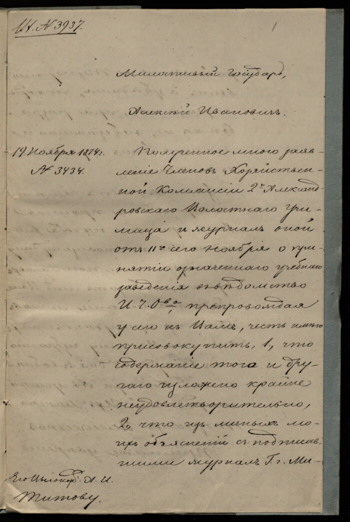 | Заголовок | Дело о принятии под покровительство Императорского человеколюбивого общества 2-го Александровского волостного училища |