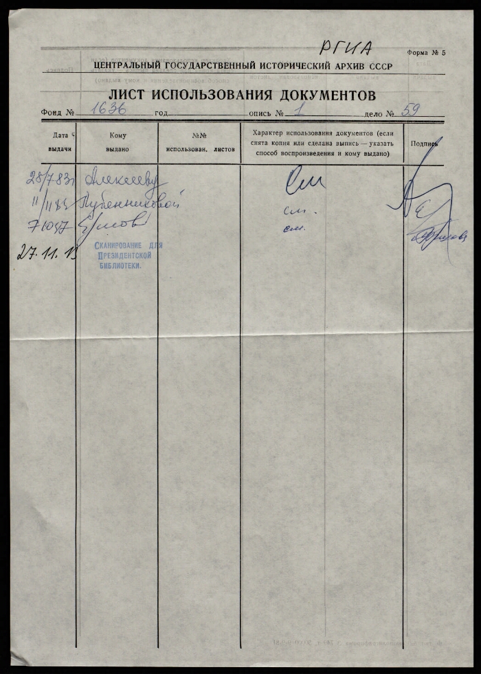 | Шифр хранения | РГИА. 1636 / 1 / 59 |